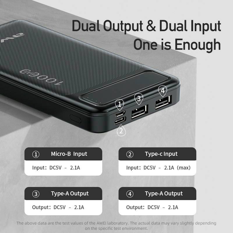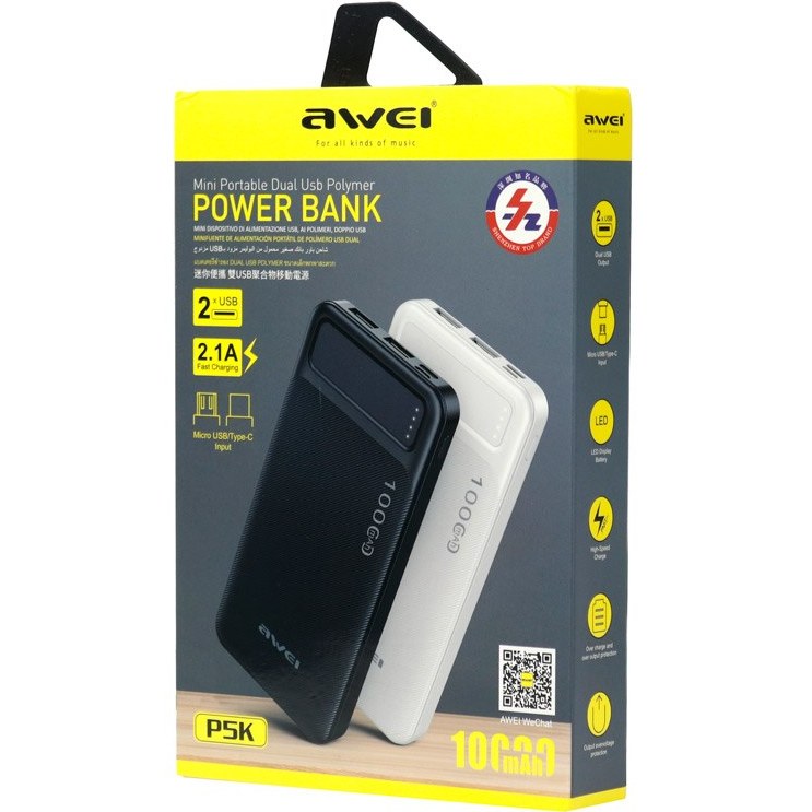 پاوربانک AWEI ظرفیت 10000mAh مدل P5K با قدرت 10 وات | مشکی